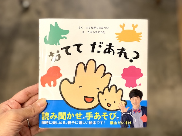 現在えほんやさんでパネル展開催中の絵本『おててだあれ?』。