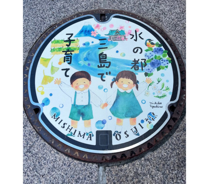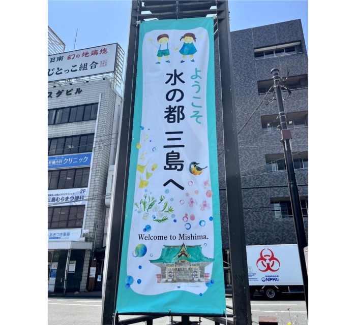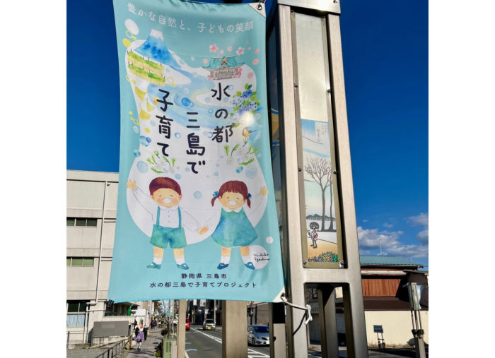 三島から新宿駅までを往復している高速バスの「水の都三島で子育て」ラッピングです。